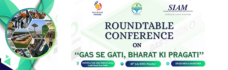 SIAM, in collaboration with the Petroleum and Natural Gas Regulatory Board (PNGRB), is organizing a Roundtable Conference on Gas-Based Mobility on Monday, 28th July 2025 at New Delhi. The conference aims to highlight the critical role of gas-based mobility in advancing sustainable transportation solutions. It will serve as a platform for distinguished experts, industry leaders, and policymakers to engage in insightful discussions, share innovations, and explore emerging technologies and best practices in the domain of gas-based mobility for the transport sector.