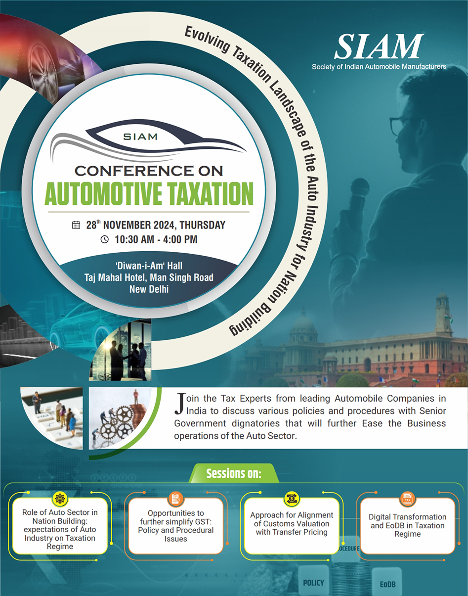 In order to discuss various procedural and operational taxation issues of the Auto Industry, SIAM is organizing the 1st edition of Automotive Conference on Taxation.